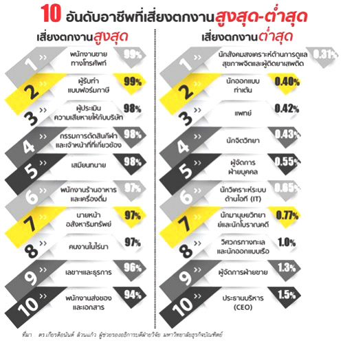 เผย10 อาชีพ เสี่ยงตกงาน สูงสุด-ต่ำสุด"
